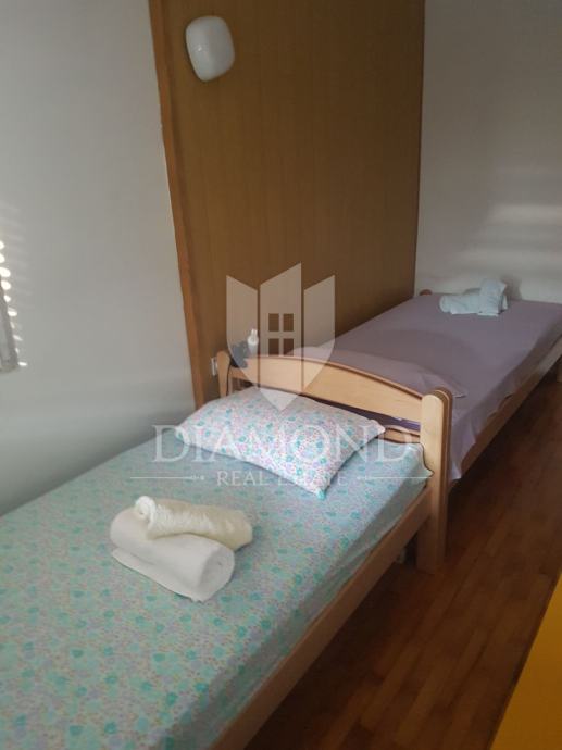 Kuća se sastoji od ukupne površine 227,60 četvornih metara ,sagrađena na okućnici površine 313 četvornih metara. Zemljište koje pripada kući je u potpunosti građevinsko. Kuća se sastoji od dva stana, od kojih svaki stan ima svoj ulaz. U prizemlju se nalazi manji stan od 95,6 četvornih metara koji se sastoji od kuhinje, dvije spavaće sobe, kupaone, te ostave. Na katu se smjestio veći stan ukupne površine 132 četvornih metara, koji se sastoji od kuhinje, dnevnog boravka, tri spavaće sobe, kupaone i ostave. Oba dva stana imaju terase sa kojih se pruža prekrasan pogled na more. Stanovi su namješteni, i opremljeni ali po želji kupaca moguća je adaptacija.