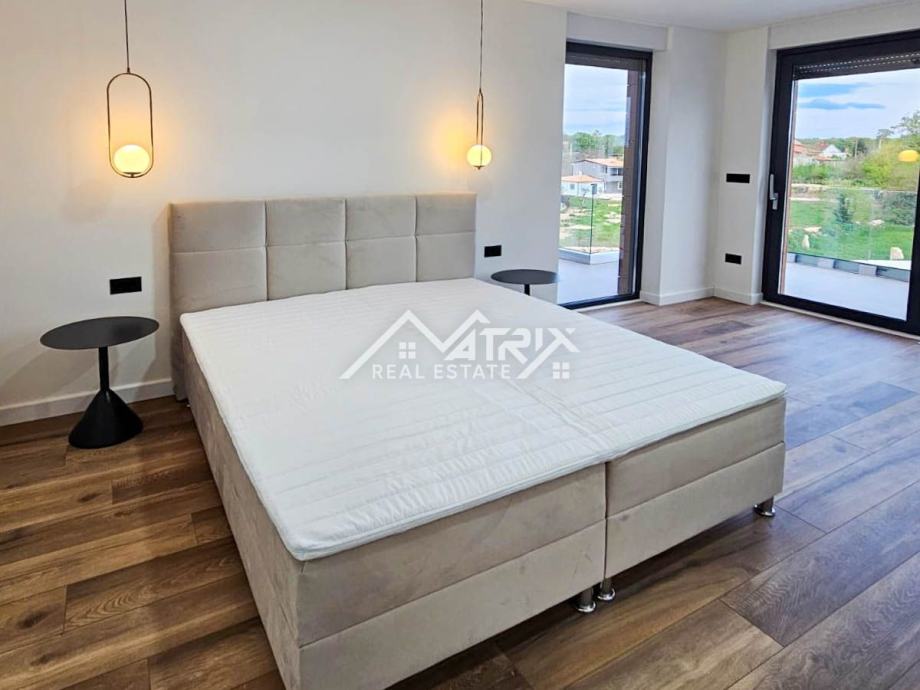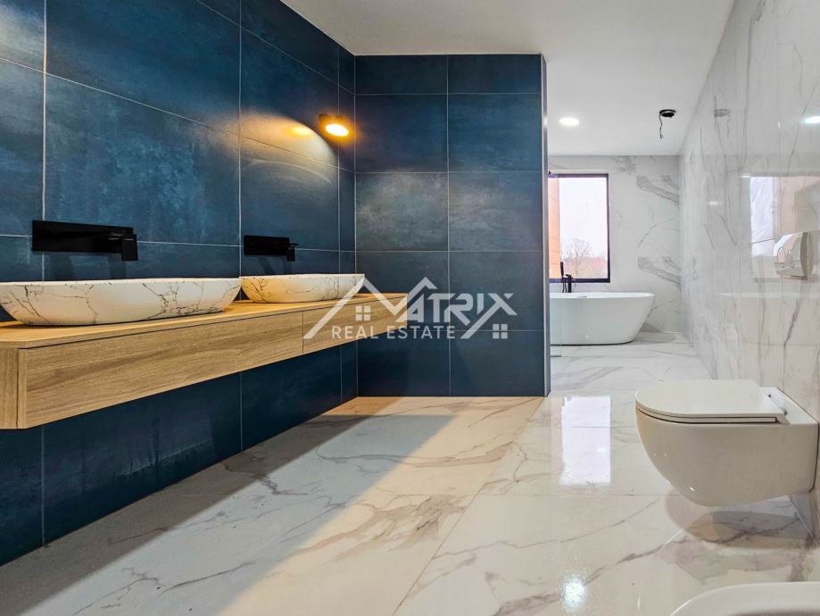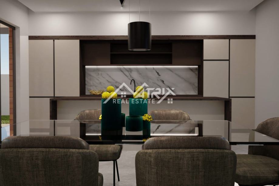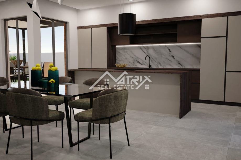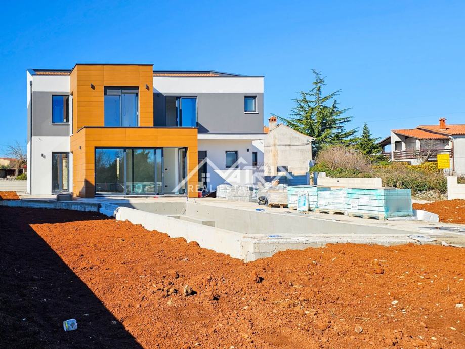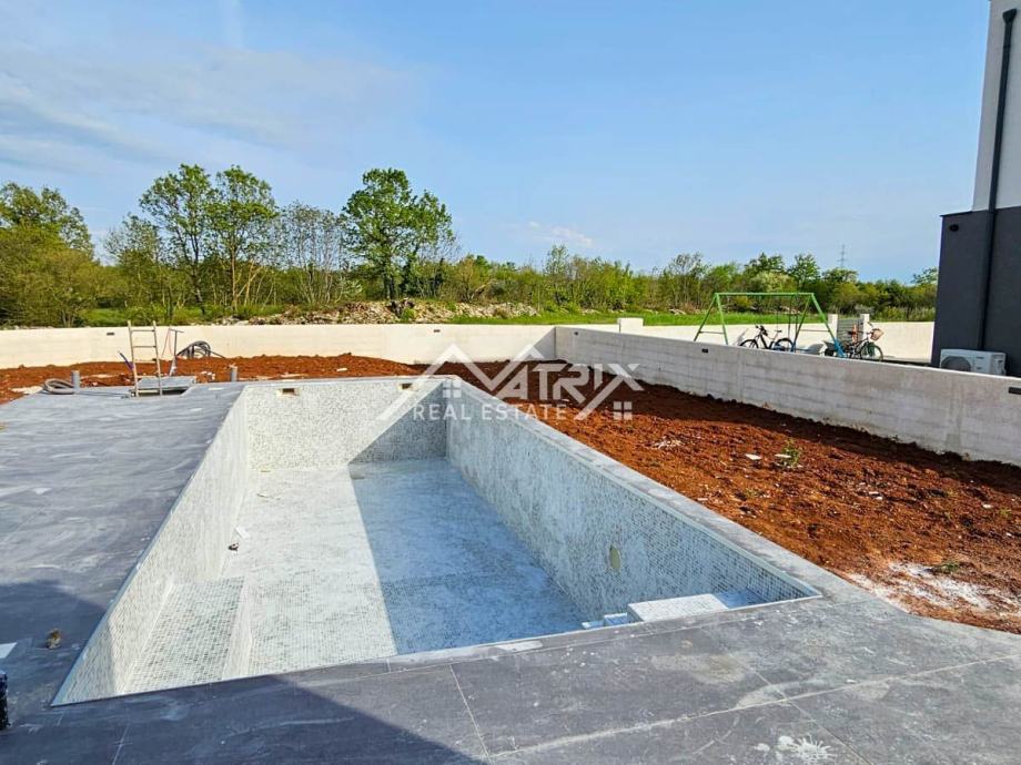 Prodaje se ova moderno opremljena i namještena vila s grijanim bazenom ukupne stambene površine 215 m2, smještena u mirnom naselju na samom rubu građevinske zone, pružajući prekrasan otvoreni pogled na prirodu. Vila se prodaje potpuno namještena dizajnerskim namještajem po mjeri, sa 'By Mirage' dizajnerskim pločicama, sa svom opremom i uređajima isključivo renomiranih proizvođača.