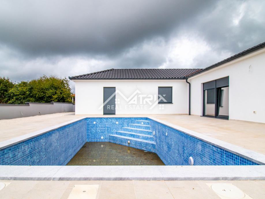 Marčana - Moderna prizemnica s bazenom na odličnoj lokaciji! Novogradnja spremna za useljenje!