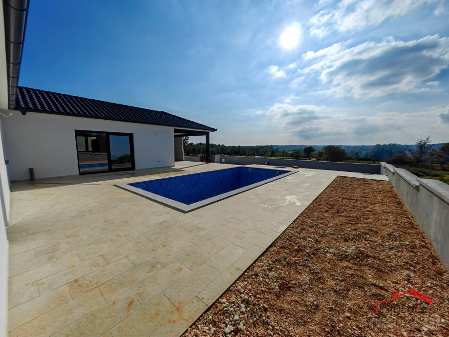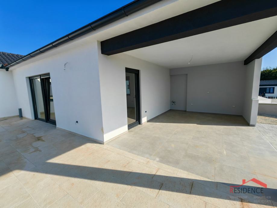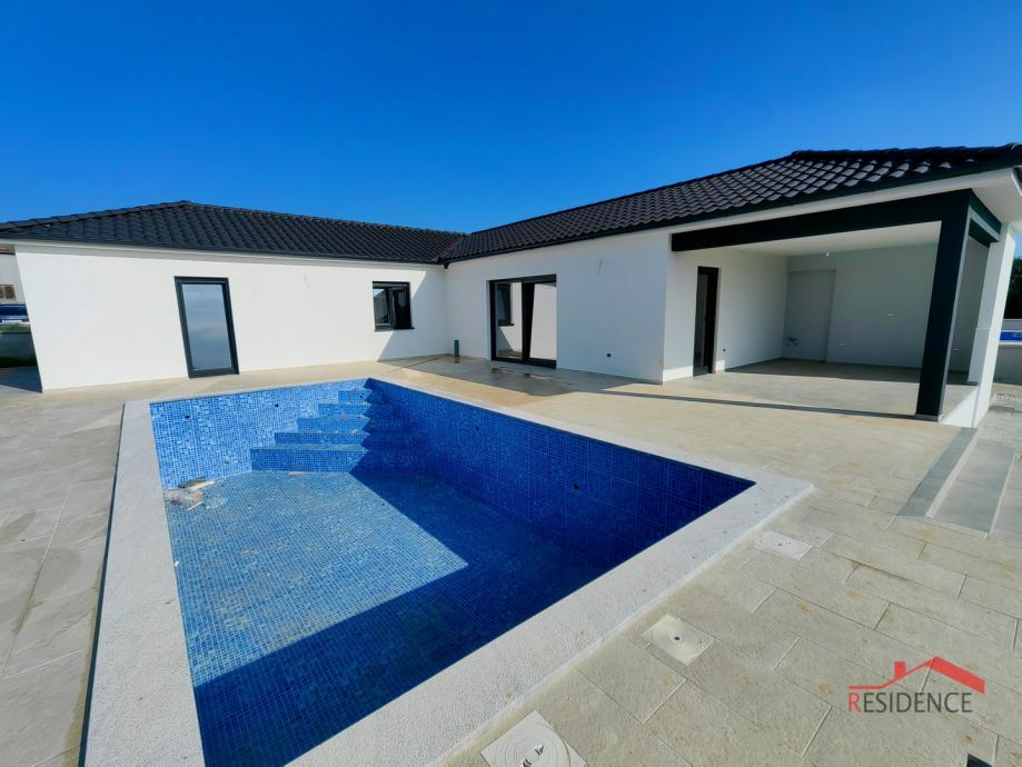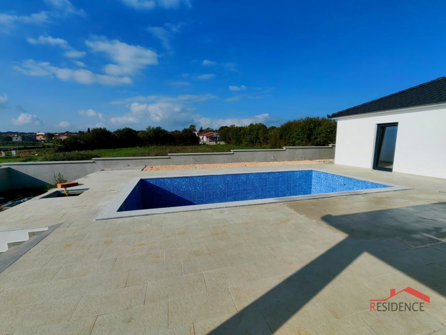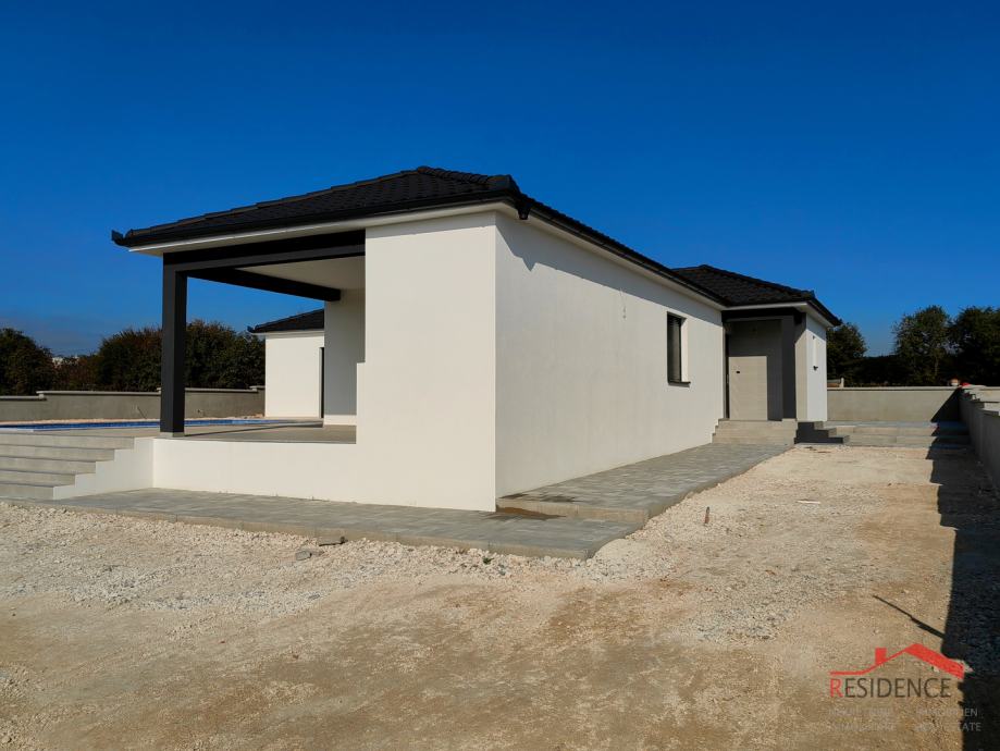 Prodajemo u Marčani novu lijepu prizemnicu sa bazenom. Prizemnica površine 135 m2, sastoji se od ulaznog hodnika, wc-a, dnevnog boravka s kuhinjom i blagovaonicom i izlazom na terasu s ljetnom kuhinjom. Tri spavaće sobe od kojih svaka ima svoju kupaonicu.