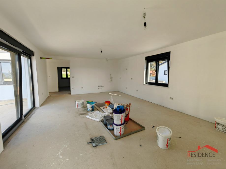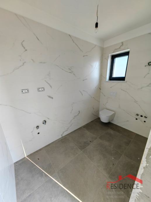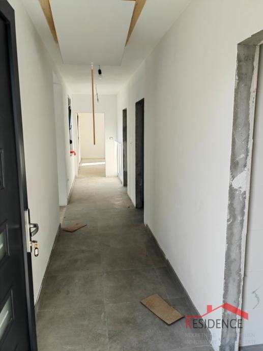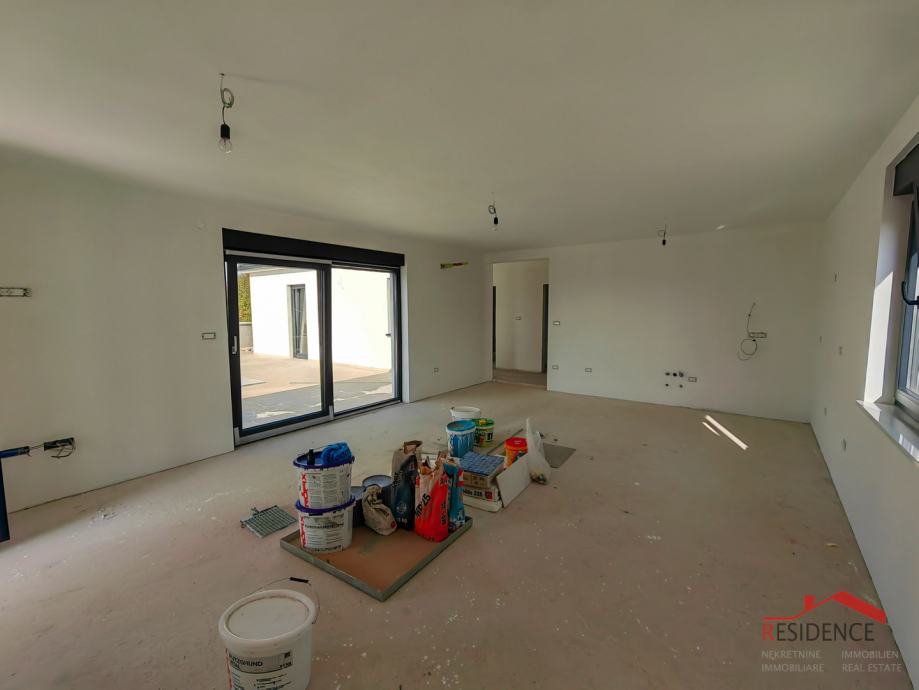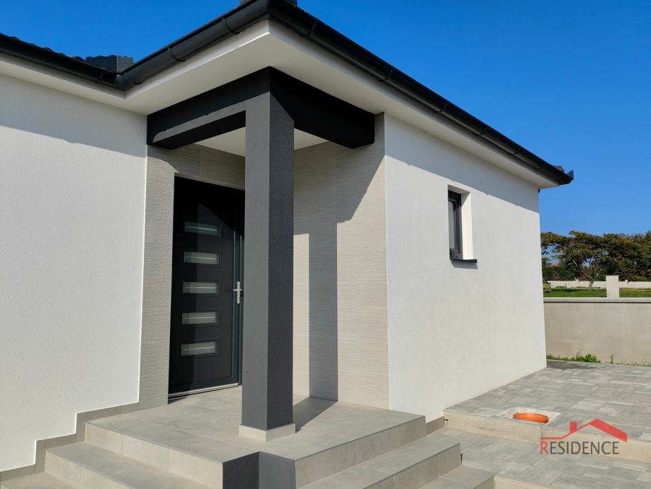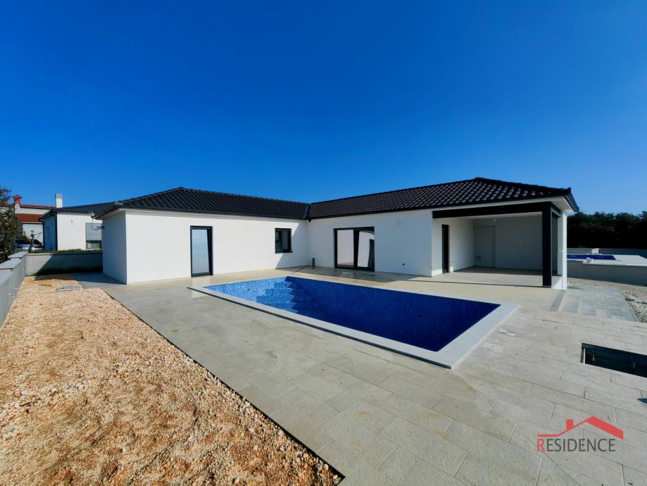Prodajemo u Marčani novu lijepu prizemnicu sa bazenom. Prizemnica površine 135 m2, sastoji se od ulaznog hodnika, wc-a, dnevnog boravka s kuhinjom i blagovaonicom i izlazom na terasu s ljetnom kuhinjom. Tri spavaće sobe od kojih svaka ima svoju kupaonicu.