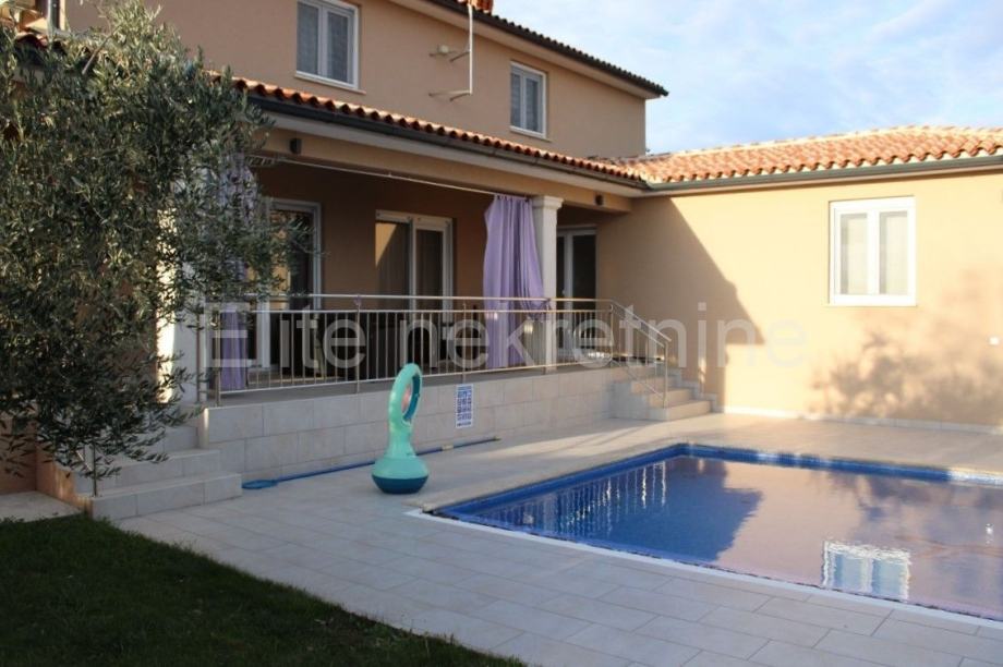 Samostojeća dvokatnica sagrađena 2019. s bazenom dimenzije 4x8 na parceli od ukupne površine 1775 m2 nalazi se u malom mjestu Divšići.