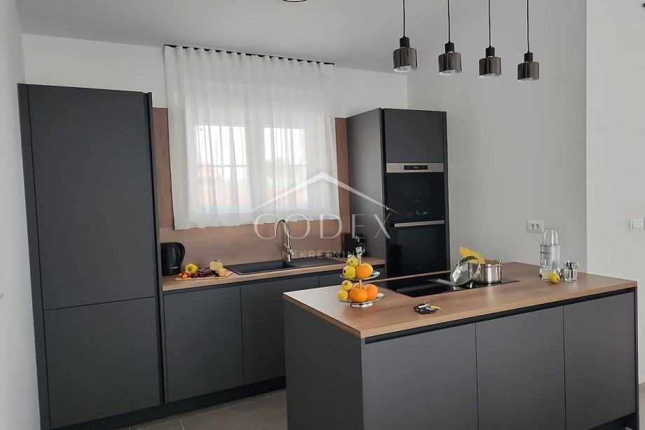 Ulazak u vilu vodi u predprostor te hodnik koji se dijeli na dva dijela. Jedan dio vodi u dnevni prostor s modernom kuhinjom, blagovaonicom i dnevnim boravkom s izlazom na veliku terasu, dok drugi dio vodi u spavaći dio s tri spavaće sobe i kupaonicom.