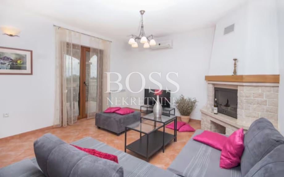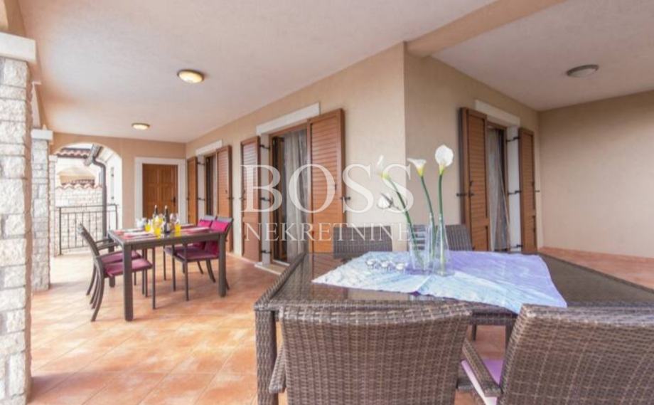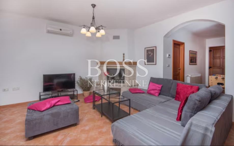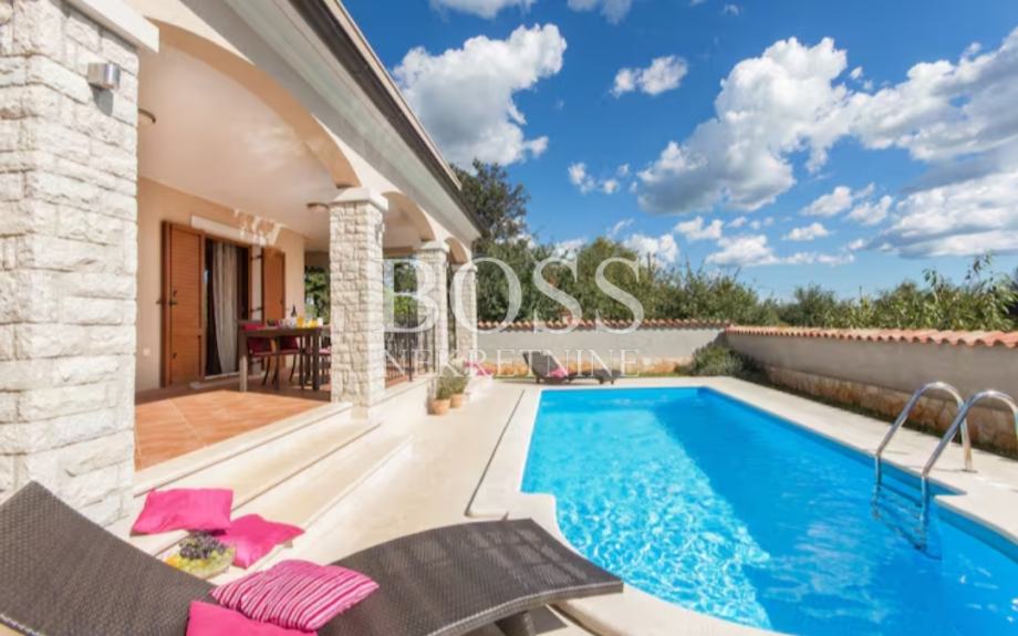 U malom istarskom pitoresknom selu, samo 9 kilometara od mora i plaže posredujemo pri prodaji predivne kamene vile površine 180m2, dvije etaže i bazen. U prizemlju se nalazi dnevni boravak s kaminom, te kuhinjom i blagovaonom, kupaona s ulaznim hodnikom, unutarnje stubište, natkrivena terasa. Na prvom katu se nalaze tri spavaće sobe, kupaona s terasom i predivna terasa s koje se pruža panoramski pogled na prirodu, vinograde i u daljini pogled na more. Ispred terase nalazi se bazen i roštilj. Kuća ima plinsko centralno grijanje s radijatorima, kamin i klima uređaj u dnevnom boravku. Garaža za jedan automobil i parking. U susjedstvu se nalazi mnogo restorana u kojima možete kušati lokalne istarske specijalitete i vina. Vlasništvo vile je uredno. Kuća se iznajmljuje u turizmu uz fantastične recenzije od korisnika. Nekretnine vrijedna pažnje! Boss, kontakt: 091/782-2323 Tihomir