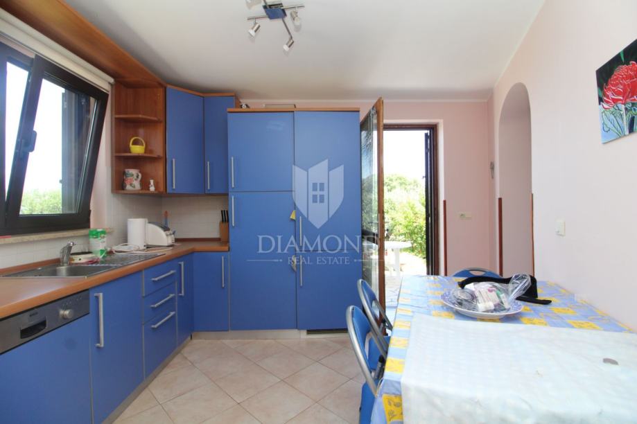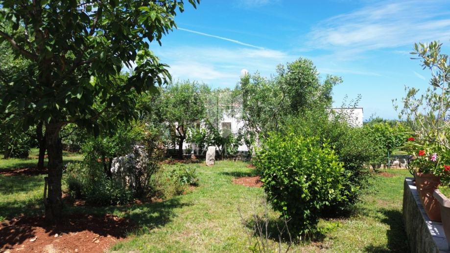 Na prodaju je šarmantna samostojeća kuća smještena u srcu slikovitog naselja kraj mora. Ova jedinstvena nekretnina prostire se na prostranom zemljištu od 1450 m² ukrašenim sa posađenim maslinama i raznim voćkama.