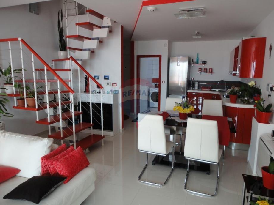 U miru i zelenilu jednog od najljepših riječkih naselja prodaje se novouređeni dvoetažni stan od 105m2. Novija zgrada na odličnoj poziciji sa otvorenim pogledom na more. Stan komforan, svaka soba ima vlastitu kupaonicu, dva balkona, prodaje se kompletno namješten.