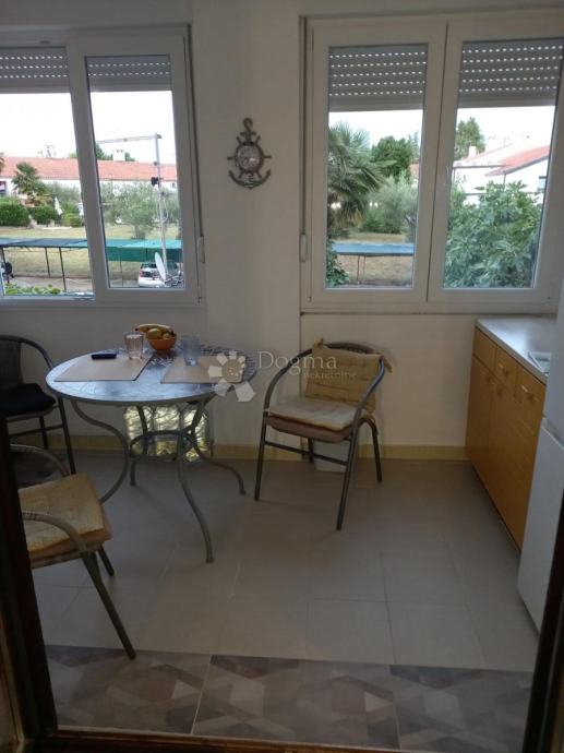 U prodaji je mali stan, garsonjera, samo 300 metara od prekrasne plaže u odlično organiziranom i lijepom naselju, udaljenom od Novigrada samo nekoliko minuta vožnje.