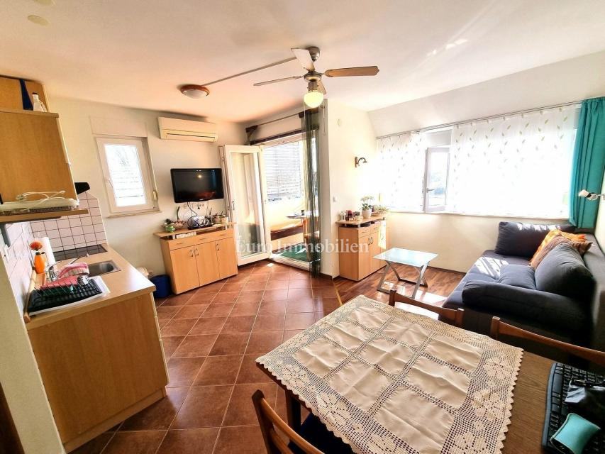 Prodaje se stan površine 39,61 m2 na vrlo traženoj lokaciji, u naselju Mareda kod Novigrada, svega 350 m od uređenih plaža. Nalazi se na 1. katu i ima zaseban ulaz. Ima odličan raspored. Sastoji se od ulaznog hodnika, velikog dnevnog prostora: kuhinje, blagovaonice, dnevnog boravka i natkrivenog balkona okrenutog prema jugu. Iz hodnika dolazi do kupaonice i spavaće sobe iz koje se izlazi na još jedan natkriveni balkon (sjever). Na tom balkonu se nalazi i spremište koje može služiti za bicikle ili slično. Stan je vrlo lijepo uređen, održavan i ima puno svjetlosti. Pogled s južne strane je na park i masline. Prodaje se s namještajem i opremom (osim nekoliko stvari). Grijanje je regulirano putem klima uređaja i električne panel ploče. Stolarija je PVC.
