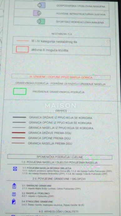 Do zemljišta iz samog centra Marije Gorice vodi asfaltirana cesta koja se proteže i uzduž zemljišta. Uz samo zemljište proteže se električni vod, te je priključak moguć na željenom mjestu. Na samom zemljištu se nalazi i gradski vodovod (potrebno je samo izraditi priključak). Vod gradskog plina nalazi se na udaljenosti 10 m od samog zemljišta.