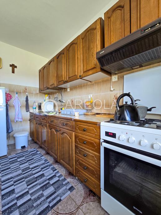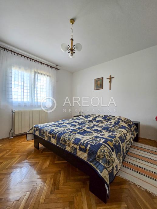 Na prvom katu kuće, nalazi se stan površine 107,13 m², a sastoji se od ulaznog hodnika, kuhinje s blagovaonicom, dnevnog boravka, tri spavaće sobe, kupaonice i ostave. Južna orijentacija dnevnog boravka i jedne od soba omogućuje izlaz na balkon povezan s terasom ispred ulaznog prostora. Stan je u potpunosti namješten te, iako se nalazi u izvornom stanju, čuvan je i uredan – dovoljno funkcionalan za useljenje, ali i s potencijalom za estetske preinake prema želji budućih vlasnika.