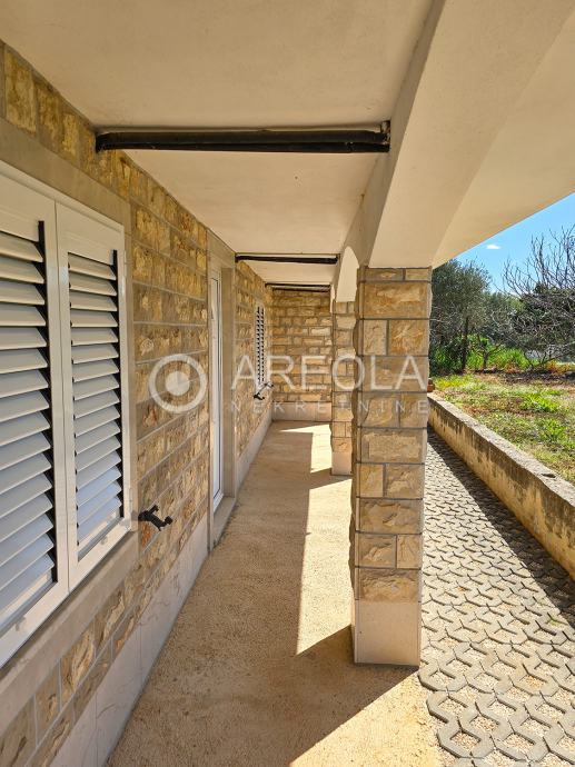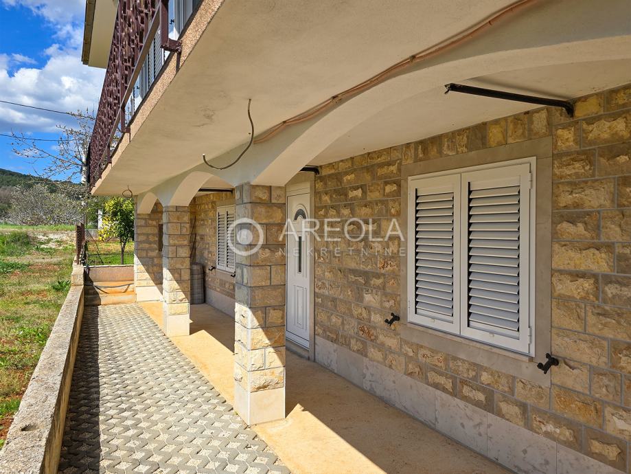 Okućnica je ograđena i održavana, oplemenjena mediteranskim raslinjem, voćkama i cvijećem, stvarajući ugodnu i privatnu atmosferu oko kuće. Prostor ispred kuće nudi dovoljno mjesta za dodatne sadržaje poput izgradnje bazena.