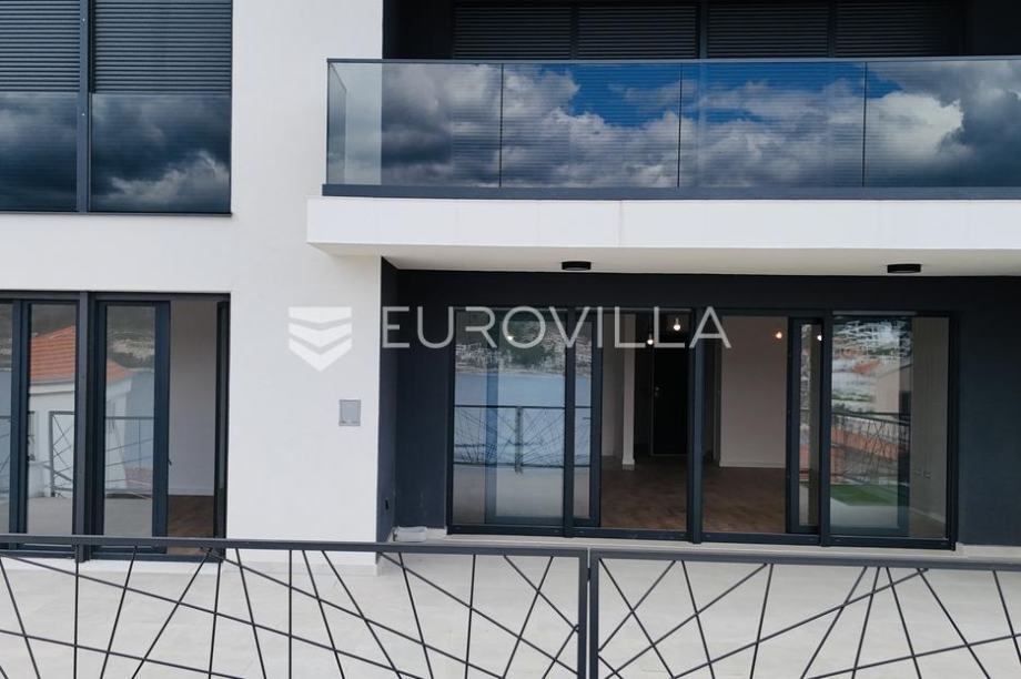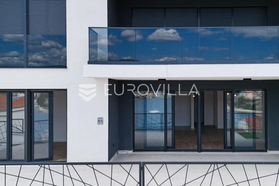 Marina, odlična lokacija s otvorenim pogledom na more i grad. Luksuzan četverosoban stan NKP 135,53 m2 na etaži prizemlja. Sastoji se od garderobe, prostranog dnevnog boravka s kuhinjom i blagovaonicom, loggie, terase, wc-a, 3 spavaće sobe, 2 kupaonice i garderobe.Projekt luksuznih stanova, tek...