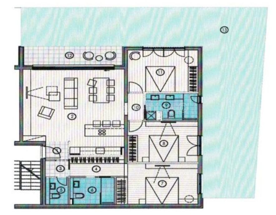 Trosoban stan S2 nalazi se u prizemlju zgrade, s ukupnom stambenom površinom od 114.45 m² i pripadajućim vrtom od 84.00 m². Stan uključuje: ulazni prostor, kuhinju s blagovaonicom i dnevnim boravkom, garderobu, toalet, dvije kupaonice s toaletom, te tri spavaće sobe.