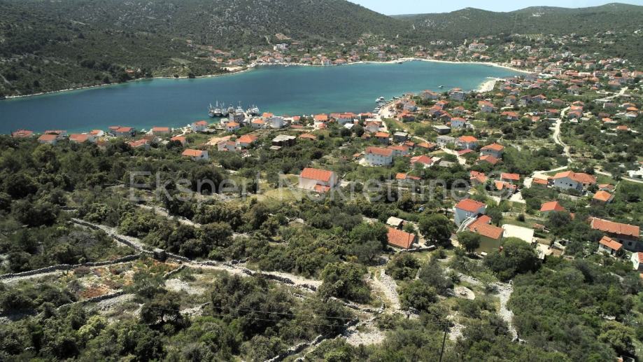 Marina,Vinišće,građ. zemljište 656 m2,pogled na more,320m od mora