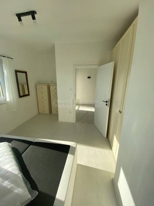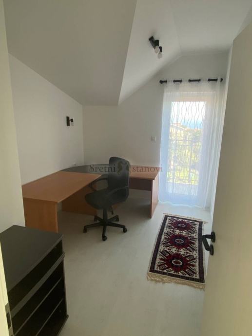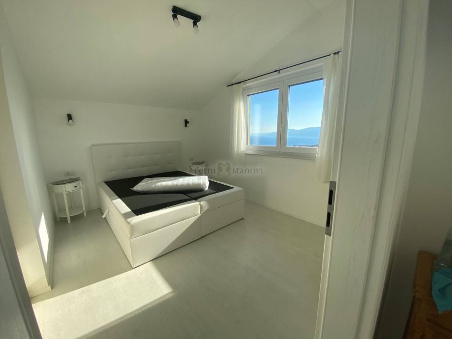 Prostrani, luksuzni stan u novogradnji na lokaciji Gornji Zamet-Marinići. Dvoetažni stan s pogledom na more sastoji se od tri spavaće sobe (jedna garderoba ili radna po želji), kuhinje i bagovaone, dnevnog boravka, kupaone, Wc-a i dva balkona, te utility rooma i ostave. Sva bijela tehnika potpuno nova s garancijom. Grijanje je podno i klimatizacija. Svi priključci su odvojeni. Režije se plaćaju odvojeno. Stan ima odvojeni ulaz i dva parkirna mjesta pripadaju u okućnici. Izvanredan i ugodan stan za poslovne ljude, par ili dva djelatnika firme.