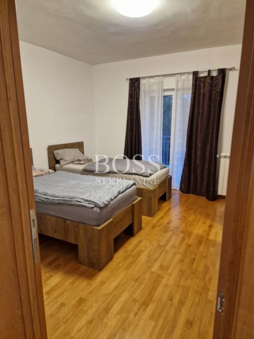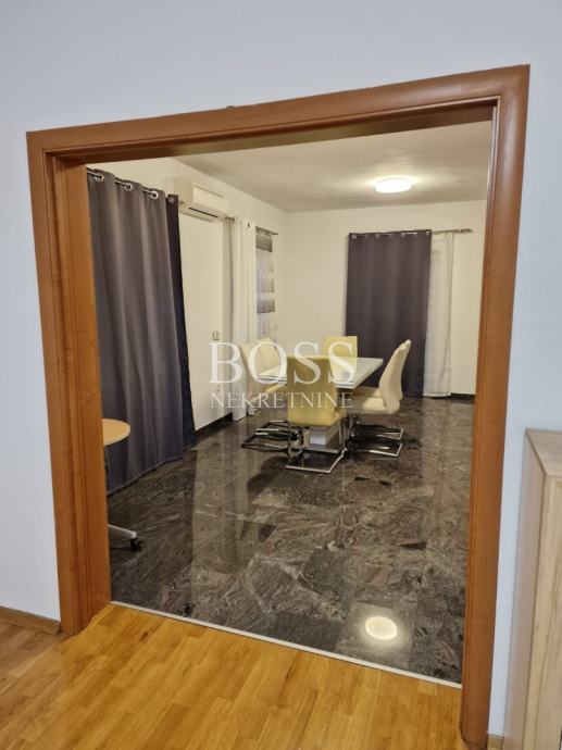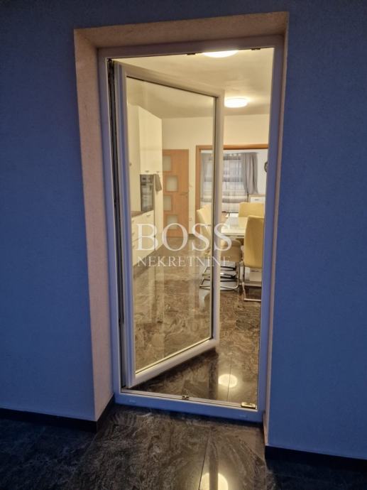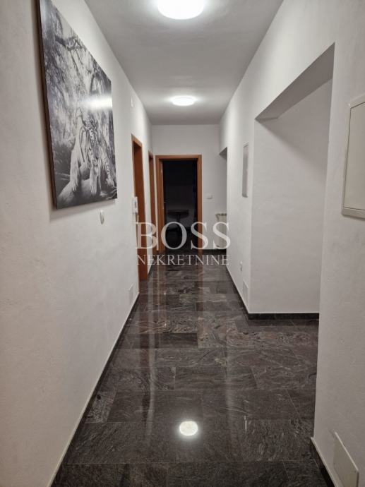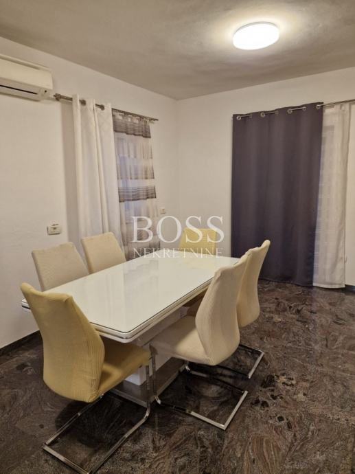 U ponudi imamo dva stana po 200m2, svaki stan ima tri spavaće sobe, dvije kupaone, terasu 20m2, veliki hodnik, smočnicu, sve novo uređeno. U svakoj sobi je klima uređaj, a svaka soba ima izlaz na balkon. Centralno grijanje na gradski plin. U svaki stan se može smjestiti 6-8 ljudi, a u kući je još jedna garsonijera u kojoj može živjeti dvoje ljudi. Svakom stanu pripada i parkirno mjesto, ali u blizini kuće je veliki parking. Nekretnine su idealne za radnike ili obitelji s djecom. Cijena po stanu je 1200€+režije, a za garsonijeru 420€+režije. Boss, kontakt: 091/373-1010 Bosiljka