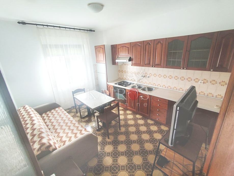 MARINIĆI, iznajmljujemo stan koji se nalazi u visokom prizemlju obiteljske kuće koja ima ograđenu okućnicu. Stan je kompletno namješten, jugoistočne orijentacije, jednosoban s dnevnim boravkom i balkonom.