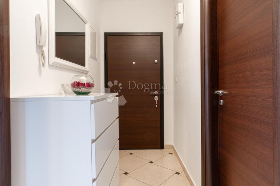 Sastoji se od dvije spavaće sobe, open space dnevnog boravka, blagovaonice i kuhinje s izlazom na natkrivenu terasu s koje se pruža otvoren pogled prema Rijeci.