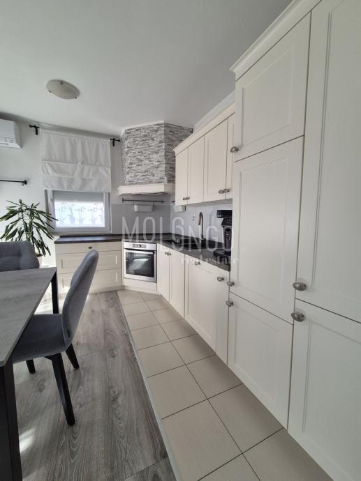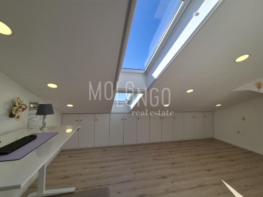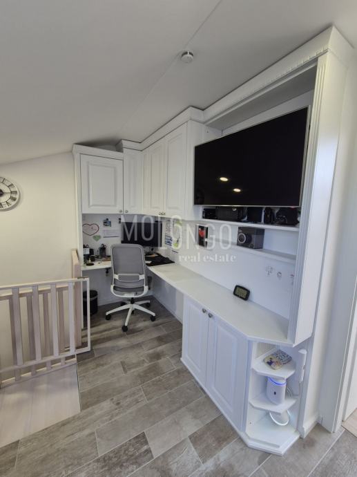 Sve izuzetno kvalitetno i novo, puno ugradbenih ormara, podno grijanje, 3 Mitshubishi klima uređaja- multi split sistem, Smart home sustav ( rasvjeta, klima, podno grijanje preko pametnog telefona ), pametno zvono ( kamera na zvonu spojena na pametni telefon i televizor ).