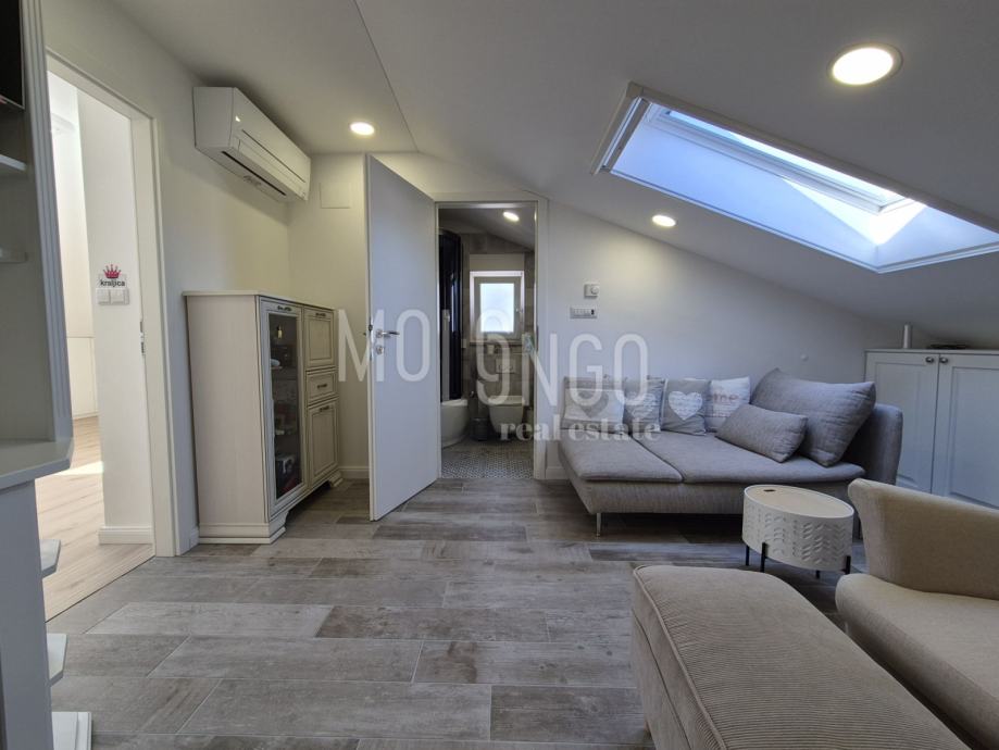 Odličnog je rasporeda, dvije spavaće sobe, dvije kupaonice, dnevni boravak, balkon, galerija sa prostorom za opuštanje i radnim dijelom.