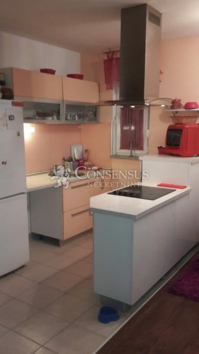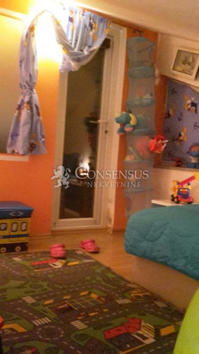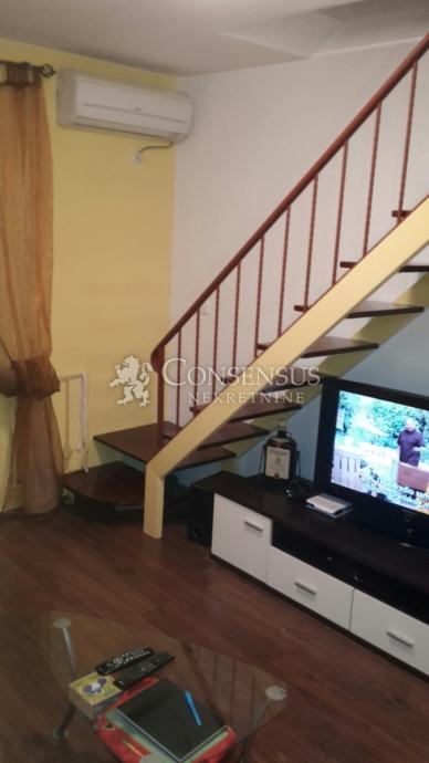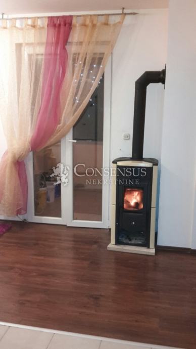 Prodaje se dvoetažan stan površine 70 m2 - 2.kat+visoko potkrovlje; na 2. katu se nalazi kuhinja, dnevni boravak, soba, kupaona, te velika lođa; VISOKO POTKROVLJE-spavaća soba i dječja soba s balkonom. Zgrada ima termo fasadu; Energetski certifikat A, grijanje drva i klima, vlastito parkiralište.