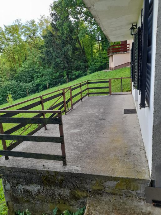 Vikendica u prekrasnom prigorju 23 km od istočnog ulaza u Zagreb ,20 min autoputom u smjeru Varaždina koji se ne naplaćuje i izlaskom na čvorištu Sv Helena.. Ima sve infrastrukturne priključke struja , gradski vodovod i asfalt do ispred kuće . Vikendica se sastoji od prizemlja i kata u ukupnoj površini 57,45m2+ balkon 7,82m2+terasa 17,00m2.Posjeduje okućnicu i voćnjak ukupne površine 514 m2 . U netaknutoj prirodi i na vrhu brdašca odakle se pruža prekrasan pogled na okolna mjesta .U prizemlju je jedinstveni prostor dnevnog boravka, kuhinje i blagovaone u koji se ulazi sa velike terase i kupatila sa wc-om.Na drugoj etaži je hodnik iz kog se ulazi u dvije velike sobe koje imaju izlaz na balkon.