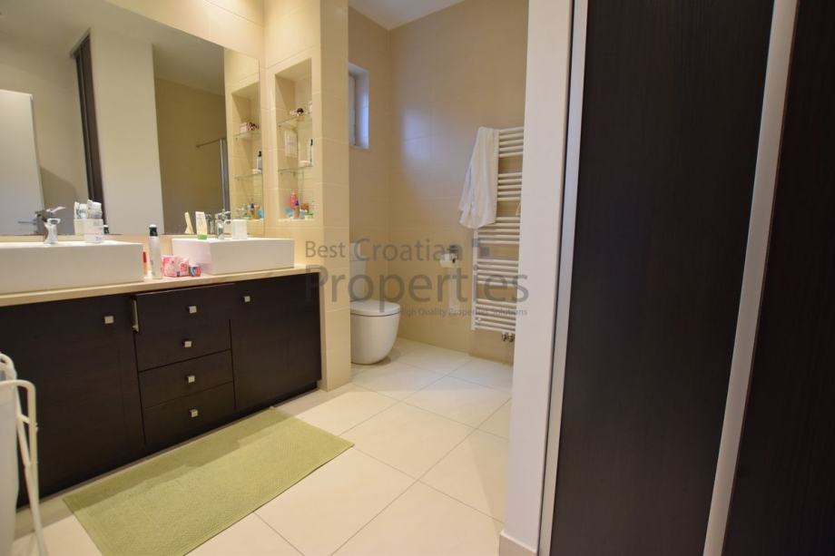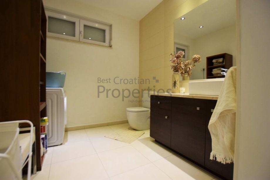 Kuću okružuje prostran i lijepo uređen vrt s voćnjakom (980m2).U svim prostorijama je ugrađeno podno grijanje.