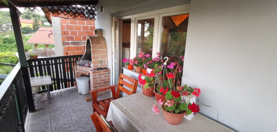 Kat: dvije prostorije, hodnik, smočnica, balkon s prekrasnim pogledom i zidanim roštiljem – savršeno mjesto za opuštanje.
