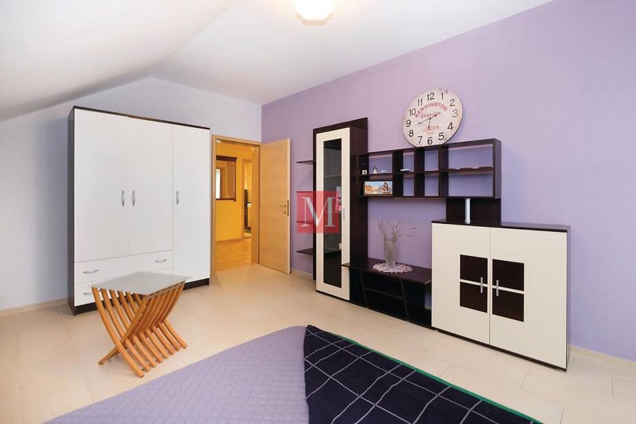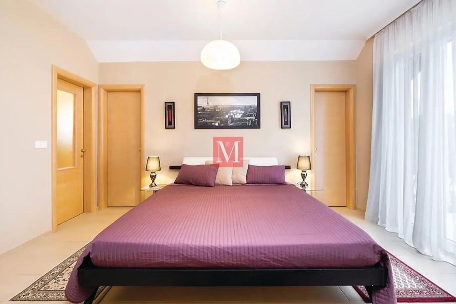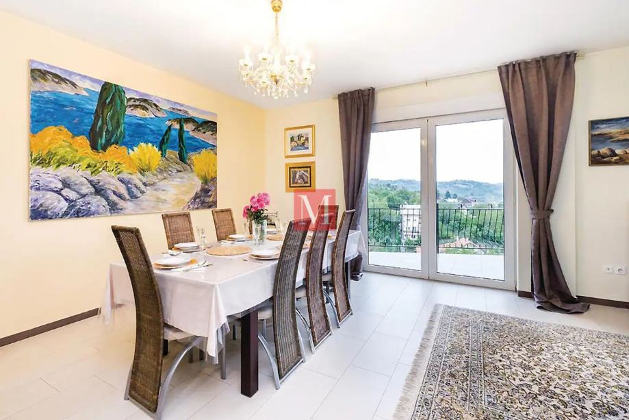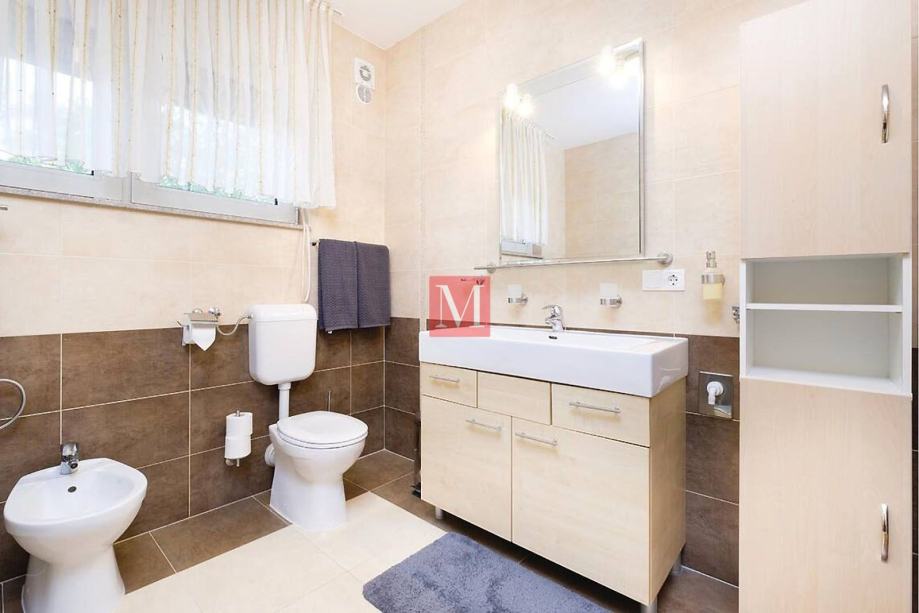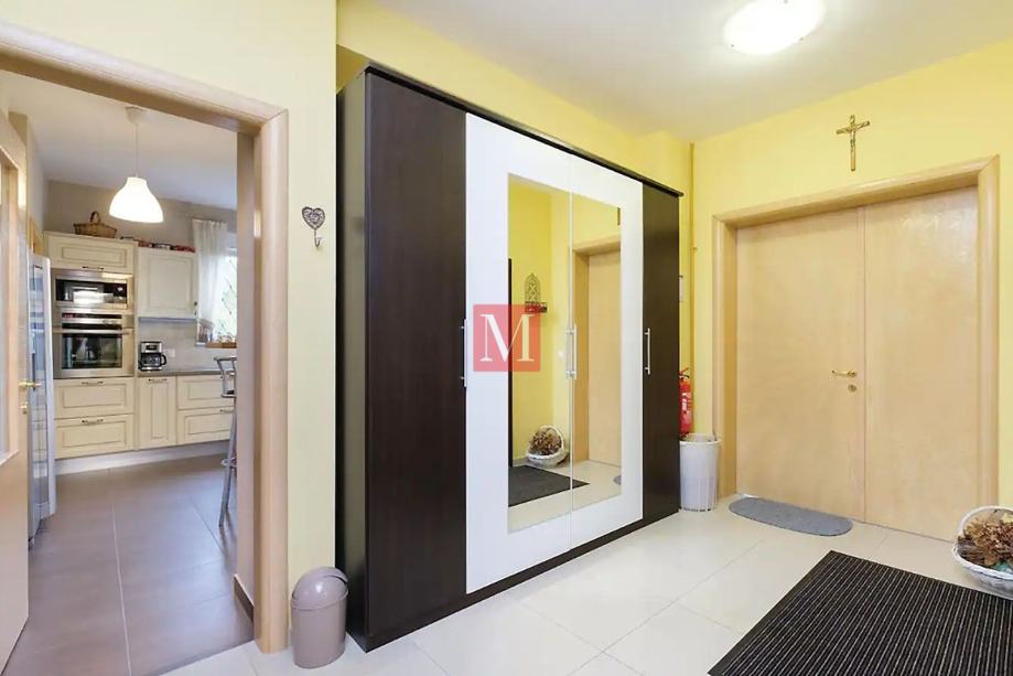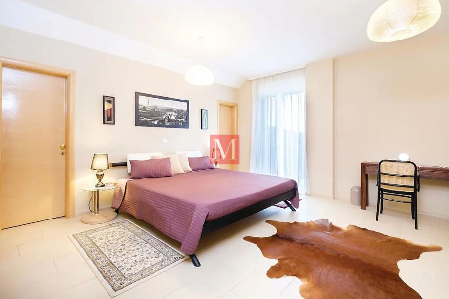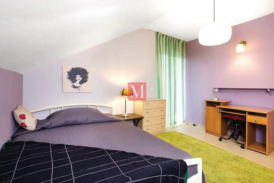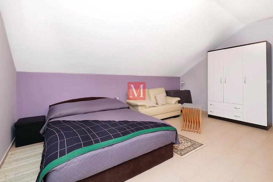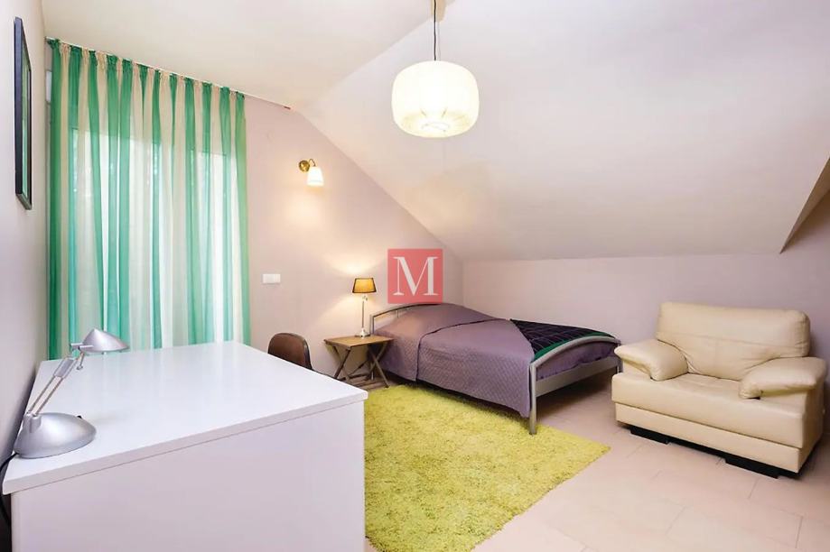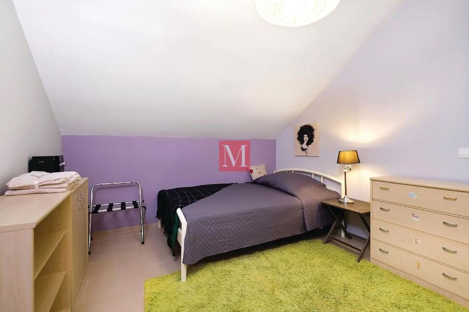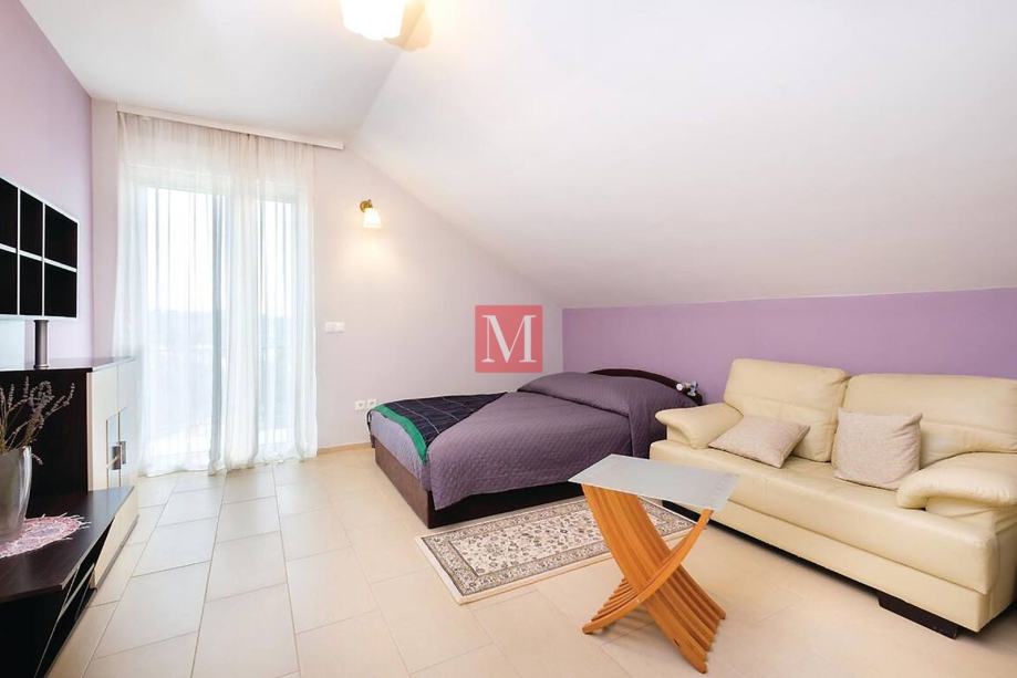 Proteže se kroz 2 etaže i sastoji od ulaznog hodnika, open space boravka s blagovaonicom, kuhinje, 4 spavaće sobe i 3 kupaonice.