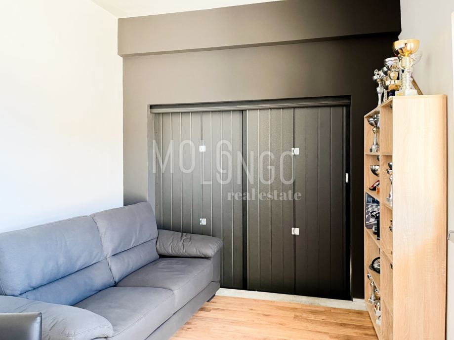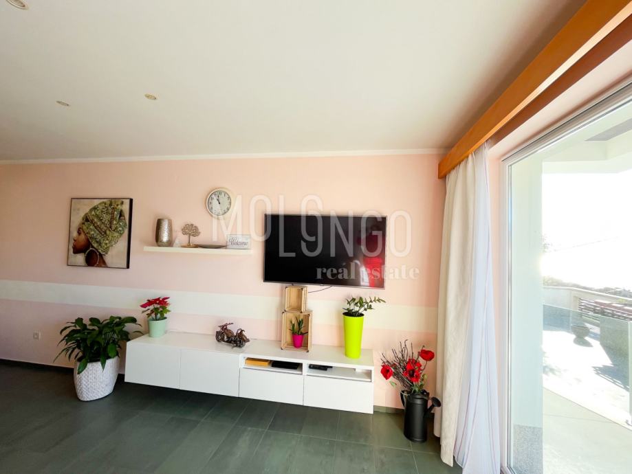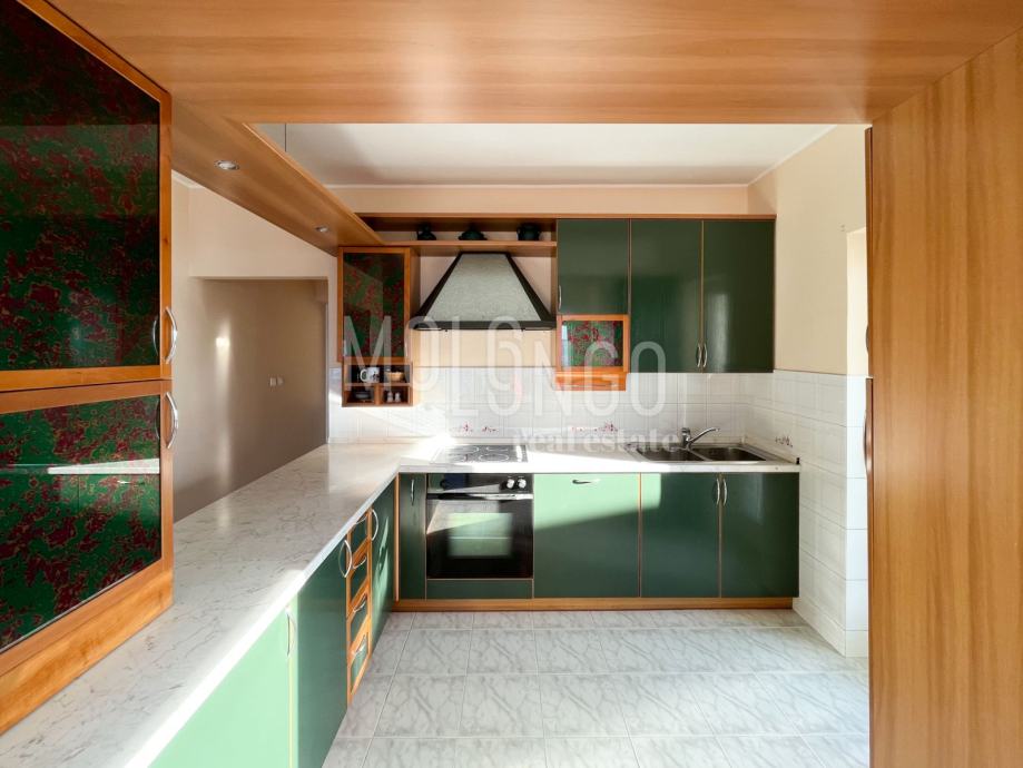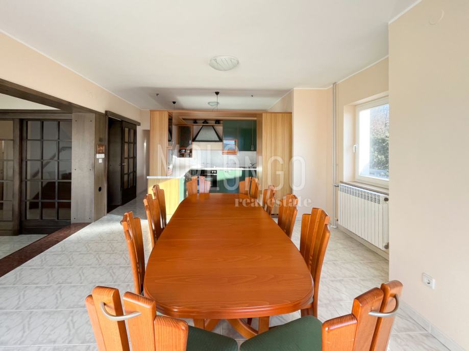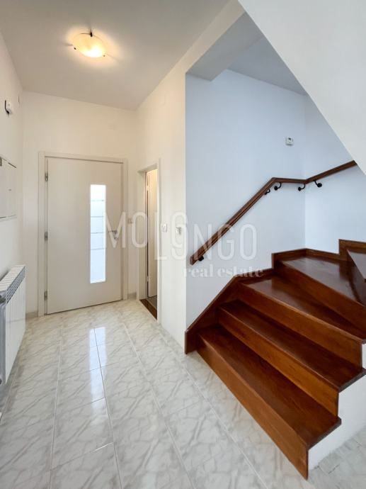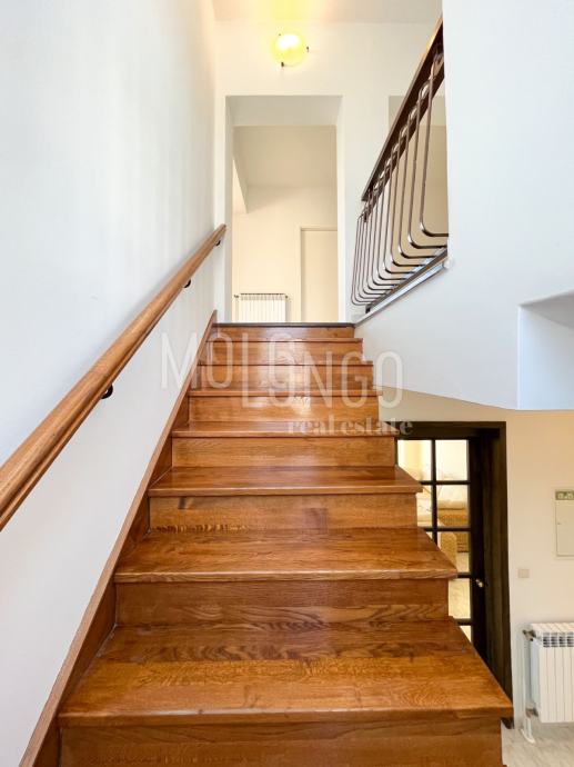 U prizemlju se nalazi 3S+DB stan površine 100m2, kupatilo i gostinjski wc, zatim dvoetažni stan koji ima tri spavaće sobe, prostrani dnevni boravak, velika blagovaonica i vrlo dobra kvalitetna kuhinja.