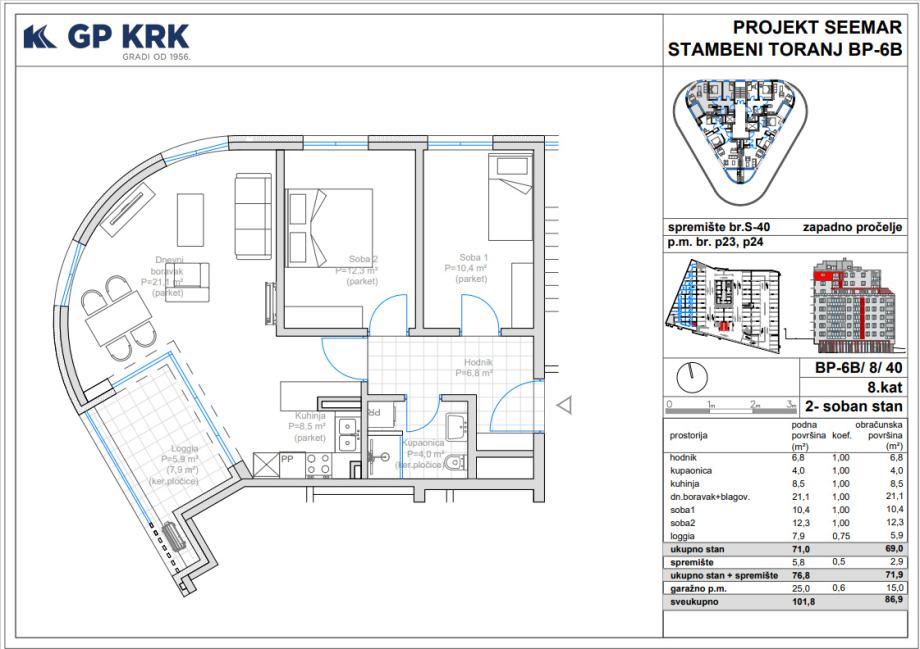 Te komplet kvadratura stana i garaza kroz koeficijent iznosi 101,8 m2