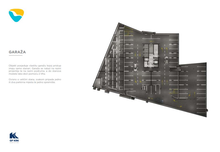 Stanu pripadaju u vlasnistvo dva garažna parkirna mjesta ukupne površine 25m2,