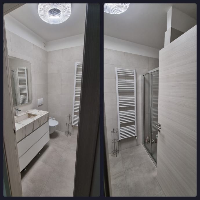Of course, the dominant northwest orientation ensures plenty of sun in the living room during the afternoon hours, from which you can access the loggia with a wonderful view of the sea. From the loggia there is a beautiful panoramic view of Opatija, the Rijeka Bay and the islands, and the hilly hinterland. The bedrooms are oriented towards the north.