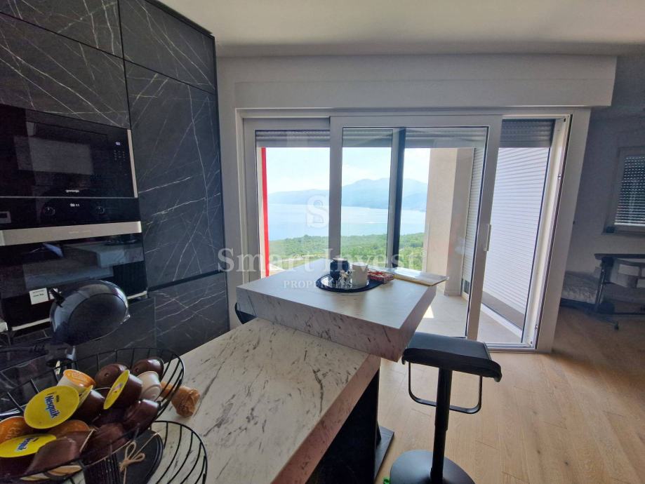 Na prodaju je moderno uređen stan površine 76,80 m2, smješten u novogradnji na atraktivnoj lokaciji s predivnim panoramskim pogledom na more, Opatiju, Riječki zaljev, otoke i okolno brdovito zaleđe.