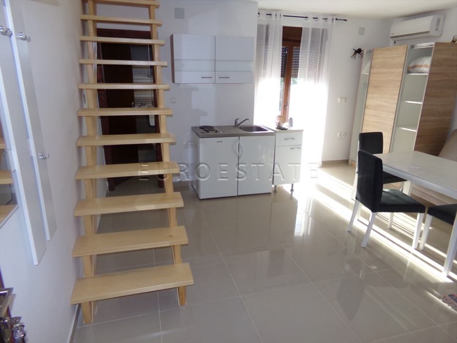 STAN 2: kuhinja sa blagovaonom i dnevnim boravkom, kupaonica sa wc-om, balkon, stepenište prema potkrovlju