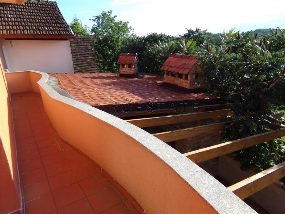 - kuća ima dva odvojena stana, tj. garsonijeru i dvoetažni 4-sobni stan,