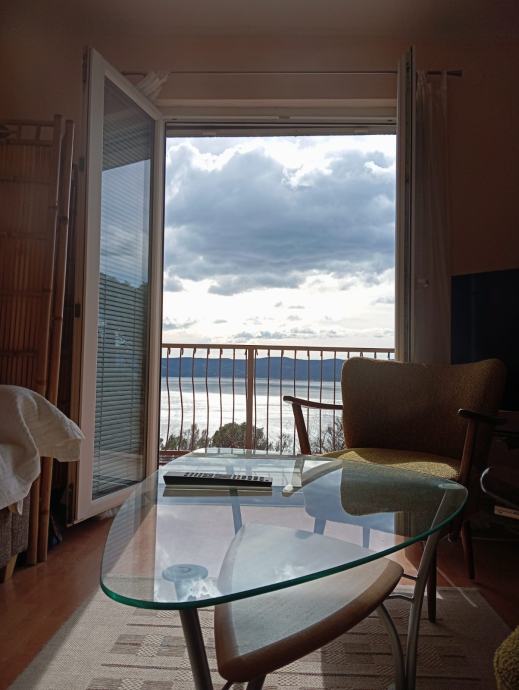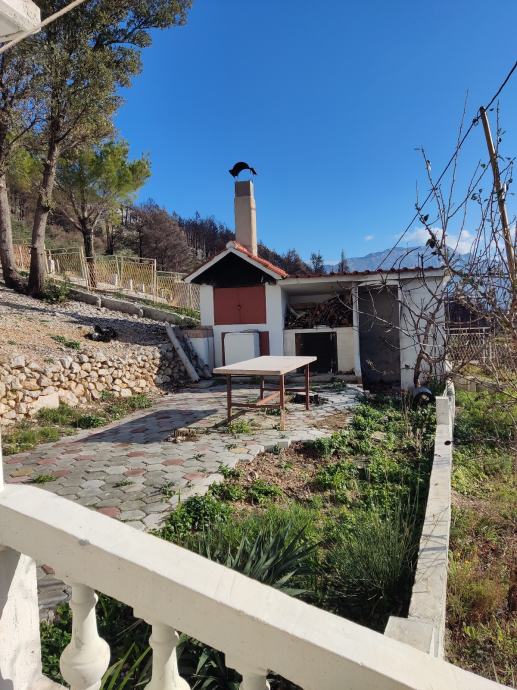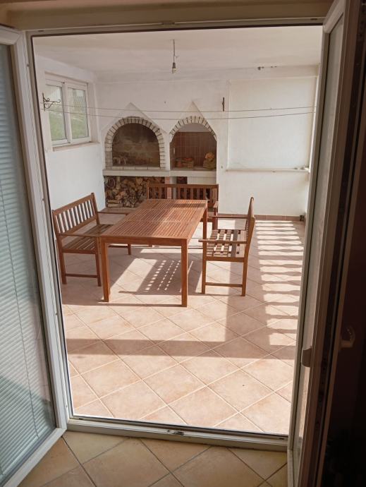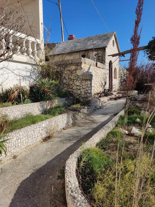 Prodaju se dva stana zajedno.Prvi stan je u prizemlju površina 57m 2.Sastoji se od dvije sobe ,kuhinje s dnevnim boravkom ,kupaonicom s WC i spremicom.Stan je potpuno prazan .Stanu pripada kućica ( ljetna kuhinja s vrtom). Drugi stan je na prvom katu 57m2 površine.Sastoji se od tri sobe ,kupatila i posebno WC,kuhinje sa blagovaonicom ,balkona i velike zatvorene terase s roštiljem i pogledom na more , Biokovo te posebnim ulazom.Stan je potpuno opremljen.Stanovima pripada vrt sa zapadne strane kuće i istočne na kojoj se nalazi vanjski roštilj i prostor za četri parkirna mjesta.Prilaz stanovima (kući)je s istočne i zapadne strane parcele.