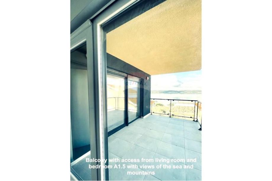 Dvije natkrivene terase s pogledom na more, dostupne iz dnevnog boravka i dvije spavaće sobe.