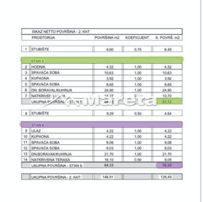 Apartman S5 dvosoban površine 61,12 m2 - cijena: 168.080 Eur