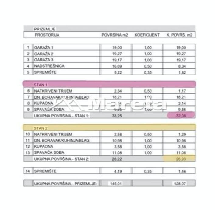 Garažno mjesto 1 - površine: 19,00 m2 cijena: 25.000 Eur