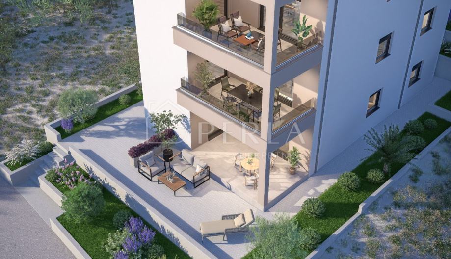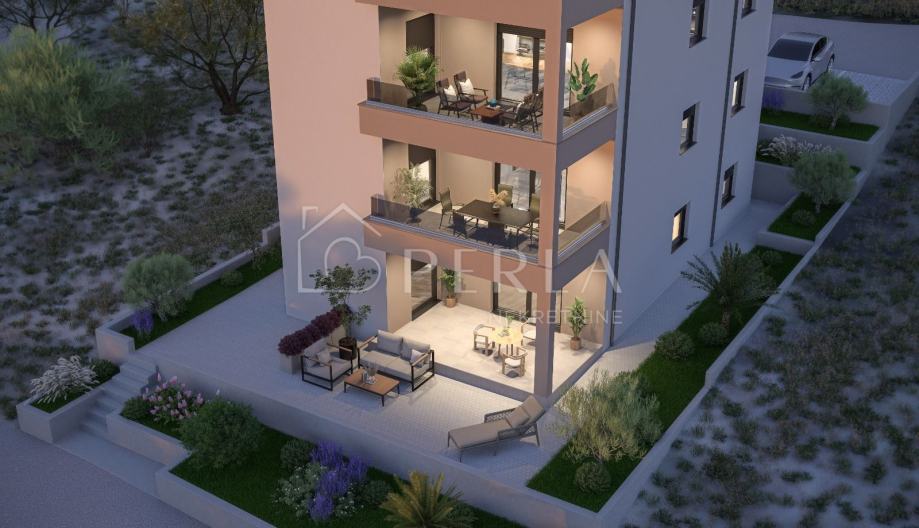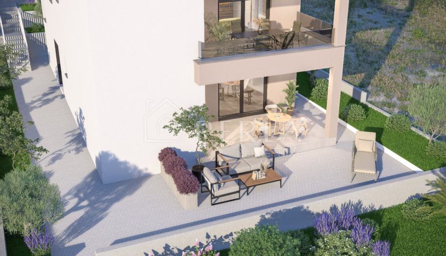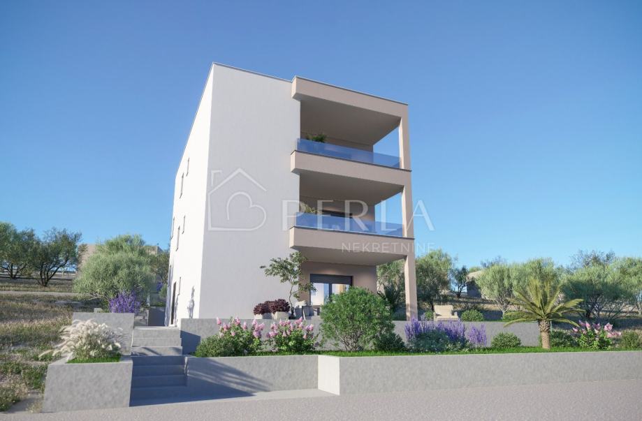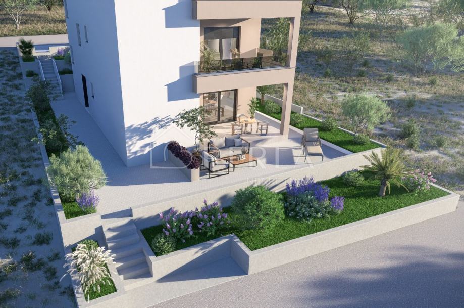Ovaj prekrasan projekt novogradnje s tri stambene jedinice se smjestio na mirnoj lokaciji 700 m udaljenoj od mora.