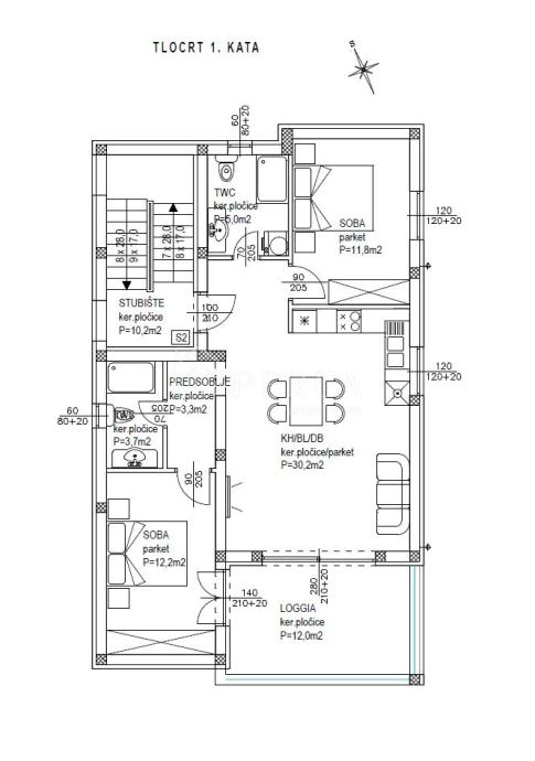 - kuhinje, dnevnog boravka i blagovaonice (30,20 m2)