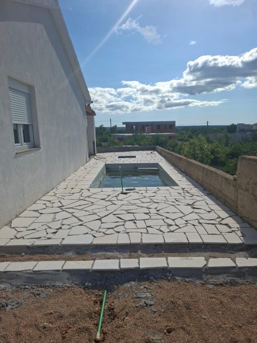Prodaje se samostojeća kuća s bazenom u Maslenici, s popločenom prostranom terasom, izgrađena je na parceli od 405 m2.
