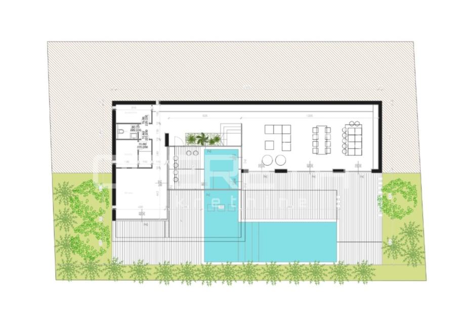 Za parcelu je izrađeno idejno rješenje moderne vile na dvije etaže s bazenom i prostranim vanjskim površinama. Sva potrebna komunalna infrastruktura nalazi se u neposrednoj blizini zemljišta, što omogućuje jednostavnu realizaciju projekta.