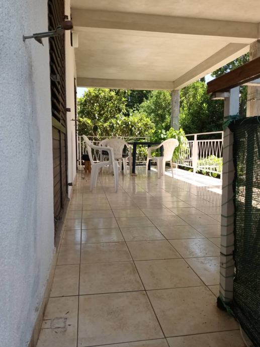 Predmetna nekretnina sastoji se od prizemlja 4sobe, hodnik, kupaonica i natkrivena terasa s pogledom na more. U suterenu je kuhinja, blagovaonica i wc. Stanu pripada 125m2 zemljišta. Kuća je etažirana i ima uporabnu dozvolu.