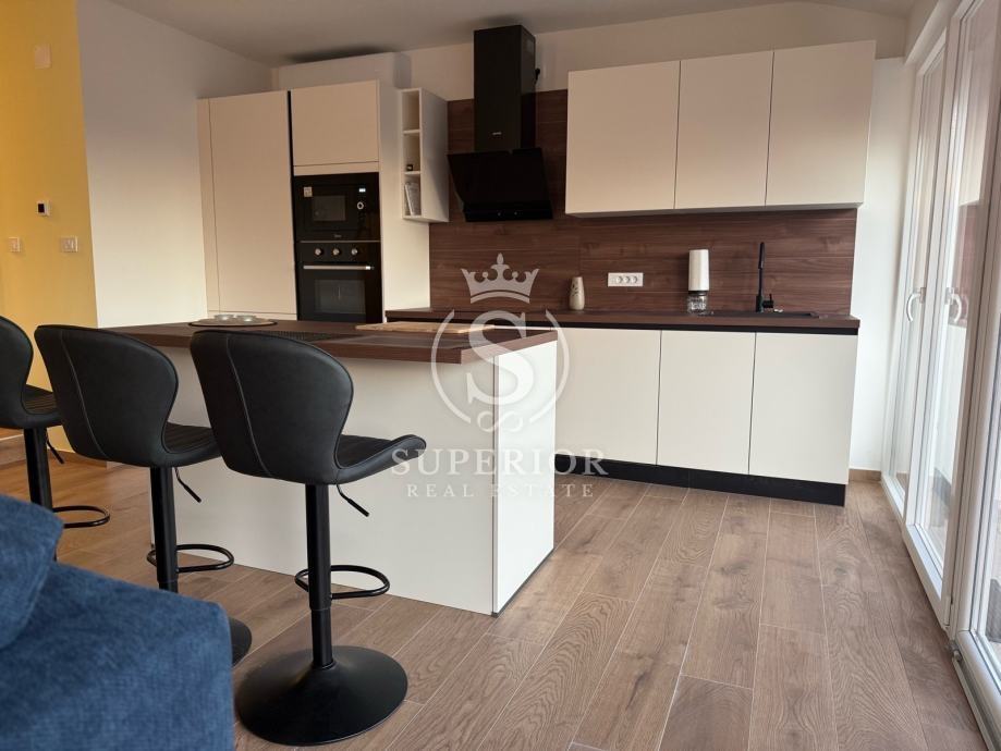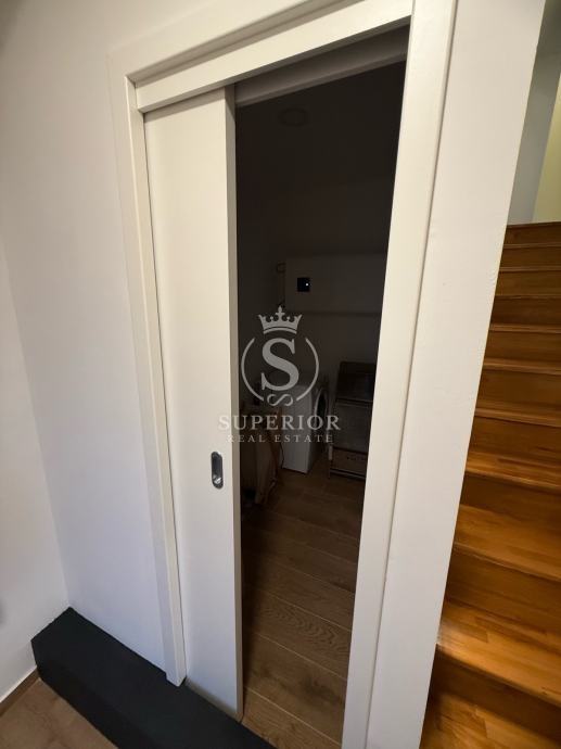Stan je pažljivo uređen s naglaskom na čiste linije, neutralne tonove i kvalitetne materijale. U cijelom stanu ugrađeno je podno grijanje, što osigurava visoku razinu komfora i ugodnu temperaturu tijekom cijele godine.