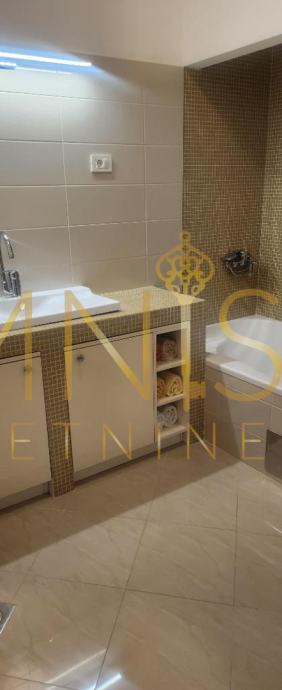 Stan je kompletno uređen sa stilom, te se sastoji od dvije sobe, dnevnog boravka, kuhinje s blagavaonicom i dvije kupaonice.