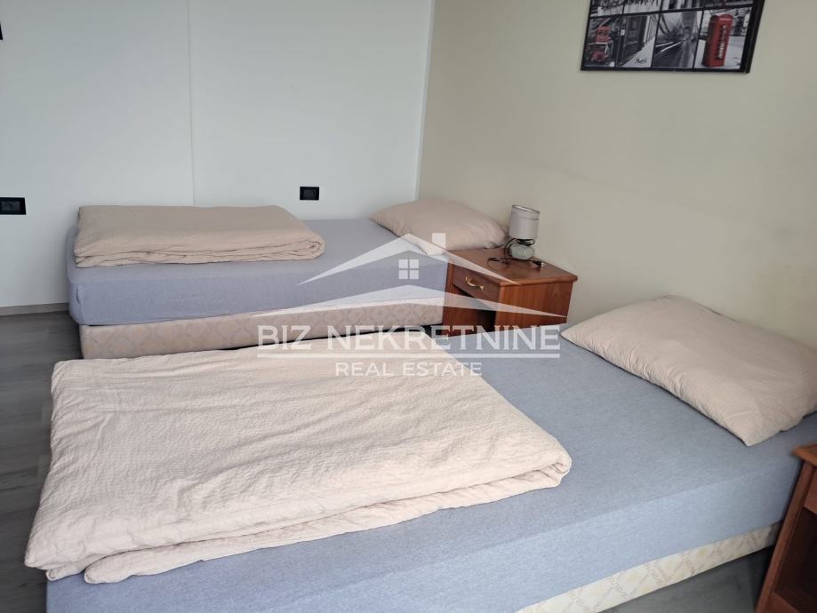 Stan je dvosoban (2 spavaće sobe), dnevni boravak, kupaonicu s wco-m, blagovaonicu i kuhinju.