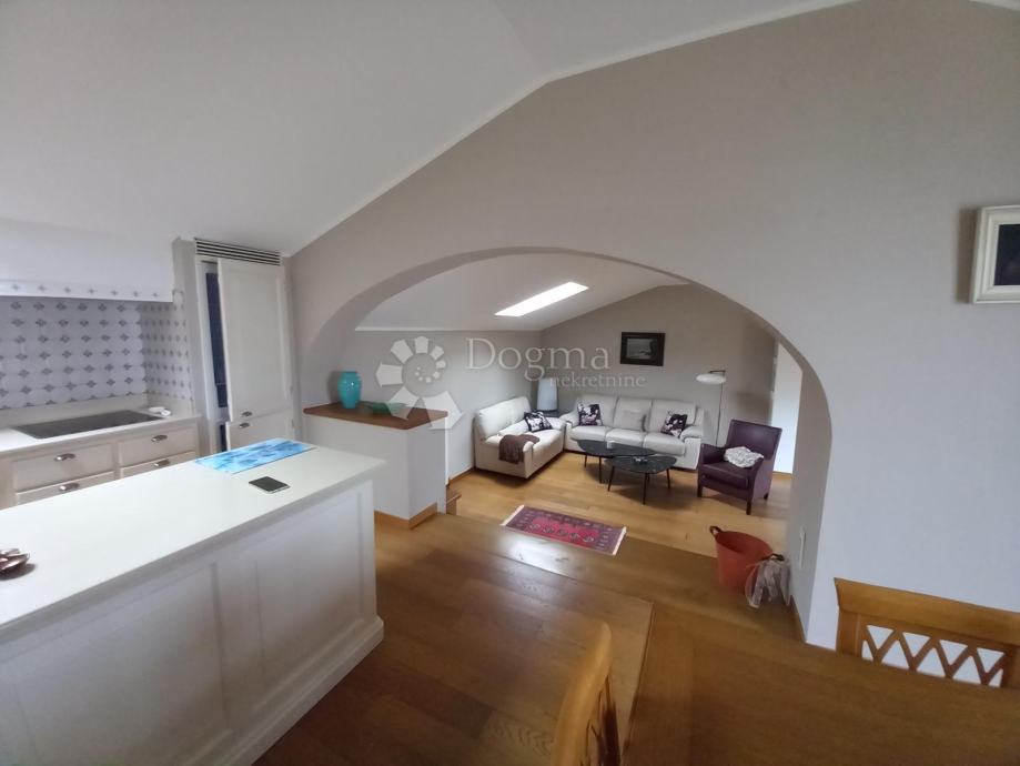 U ponudi samo za dugoročni najam dobili smo ovaj prekrasan stan u atraktivnoj villi. Stan je dvoetažni, na prvoj etaži je dnevni boravak,