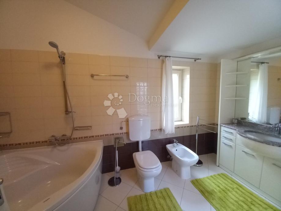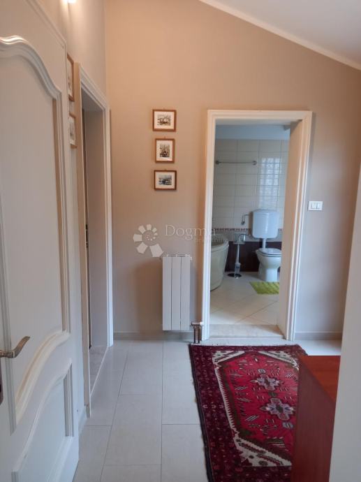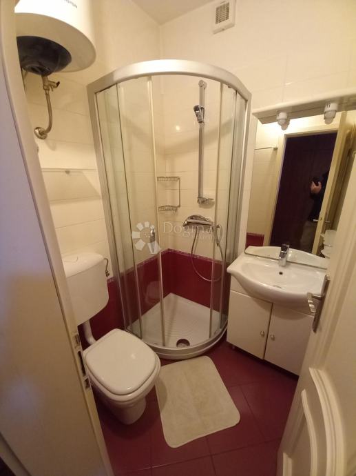blagovaona, kuhinja, hodnik, kupaonica, i terasa. Unutarnjim stepenicama spušta se do druge etaže gdje je smještena druga soba sa kupaonicom i balkonom. Predivan pogled na more, kultivirano dvorište i dobar pristup su dodati plusevi ovog stana. Postoji i mogućnost da najmodavac omogući